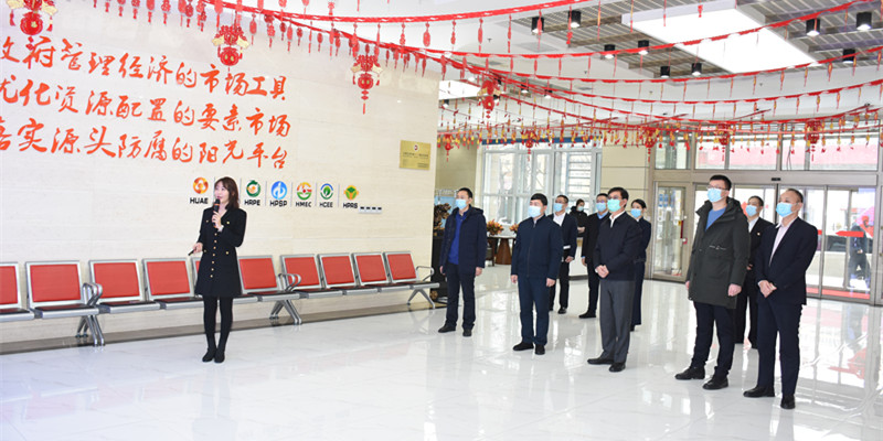 調研座談會前,張玉福一行在交易大廳聽取了交易集團基本情況和業(yè)務板塊介紹,并參觀了集團黨建工作和企業(yè)文化墻展示。